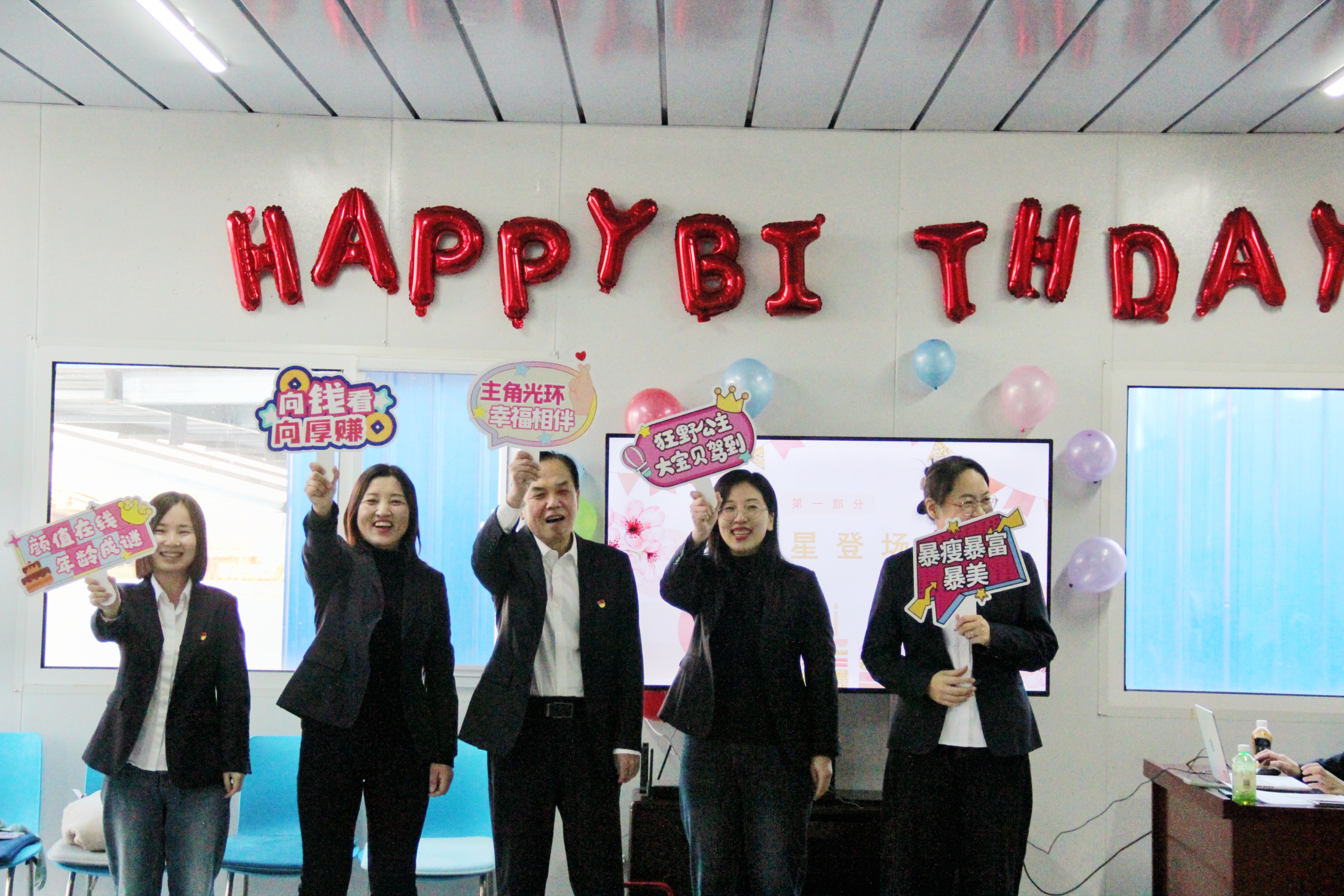隨著歡快的音樂響起,壽星們逐一登場(chǎng),他們的臉上洋溢著幸福的笑容,合影留念,定格下這美好的瞬間。緊接著,屏幕上播放起黨群工作部精心策劃的采訪視頻,視頻中,職工們的深切祝福如同春風(fēng)拂面,溫暖著即將退休的書記與項(xiàng)目經(jīng)理的心,也觸動(dòng)了在場(chǎng)每一個(gè)人的心弦。