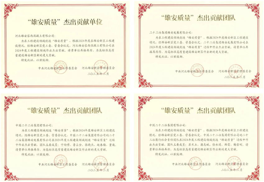 “雄安質(zhì)量”杰出貢獻(xiàn)單位:“雄安質(zhì)量”杰出貢獻(xiàn)單位